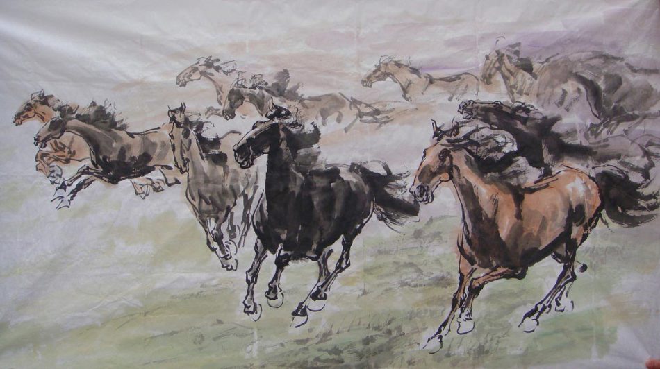 2010年8月广东省经济访问团访台,赵太极应郭峰市长之邀,为台湾地区领导人马英九创作《春暖燕知归》国画,并赠蒋孝严先生群马图。