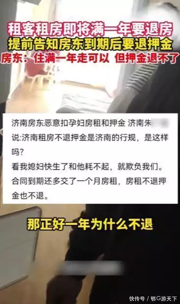 谁知退房时房东拒绝退还多交的一个月的房租和800元的押金并声称这是济南的“行规”押金是行规里面你给我富余出一个月的时间来让我去出租房子的。
